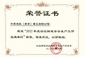 為表彰先進(jìn),進(jìn)一步推動(dòng)全街安全生產(chǎn)工作,經(jīng)街道安委會(huì)研究決定,對中昇建機(jī)(南京)重工有限公司等5家安全生產(chǎn)工作先進(jìn)單位。